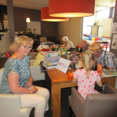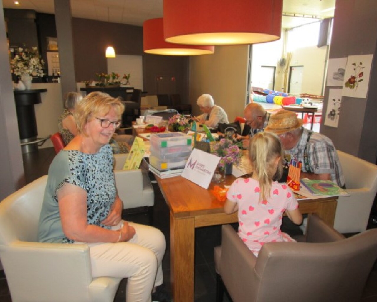 Bij de verenigingsmarkt kwamen een aantal kinderen er gezellig bij zitten om te kleuren.