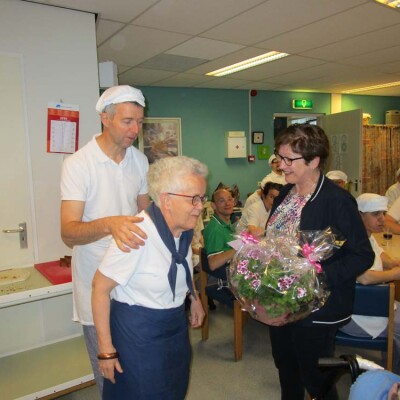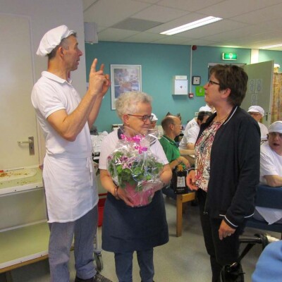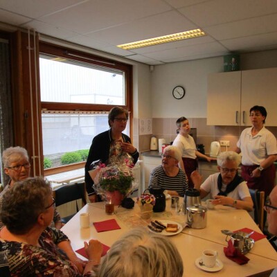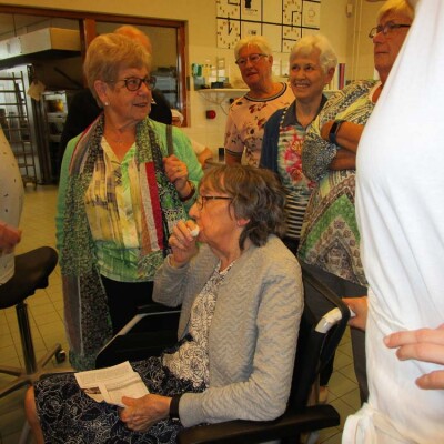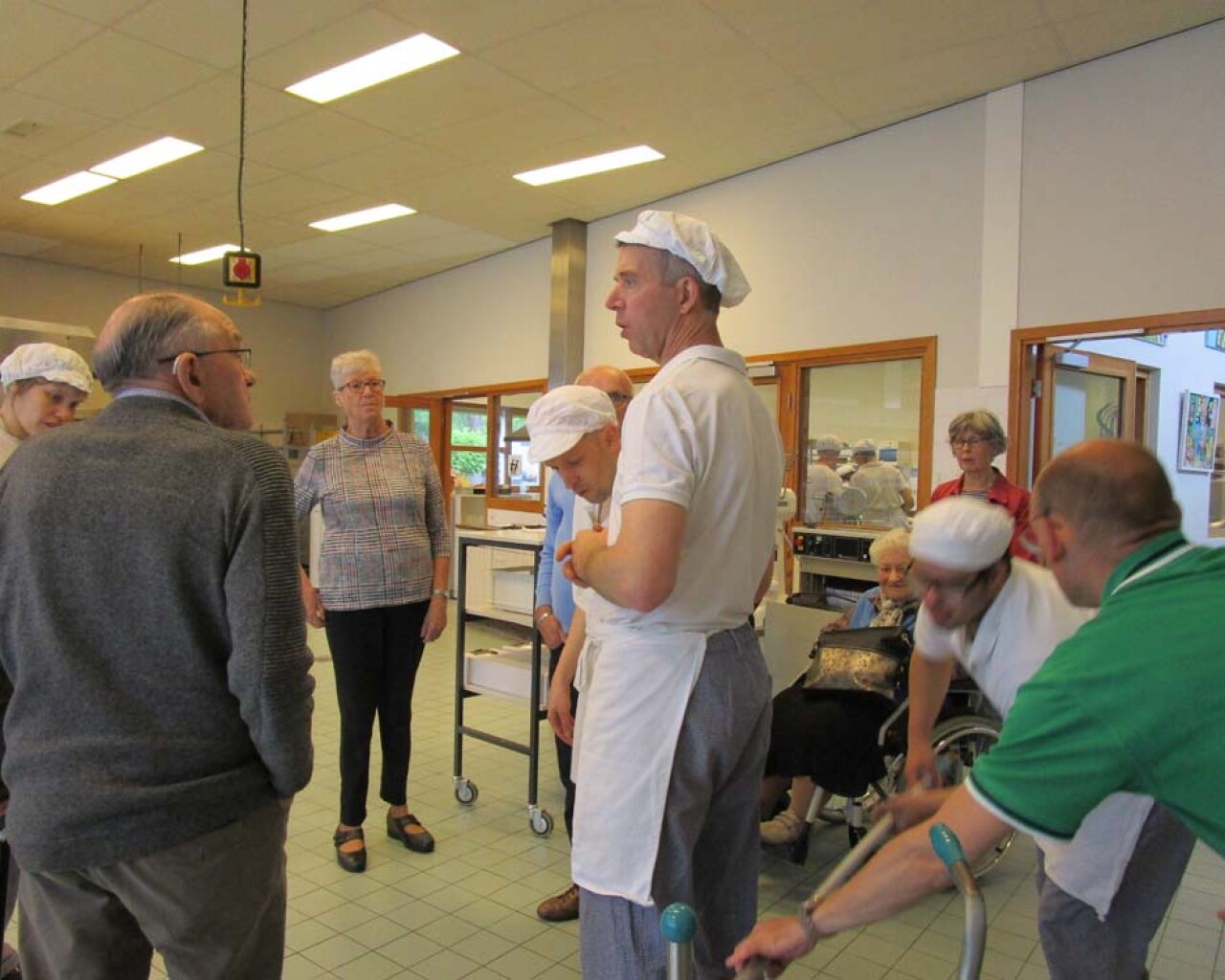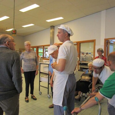 Vanmorgen hebben we een bezoek gebracht aan bakkerij Op den Beek. We werden hartelijk ontvangen met koffie en cake. Daarna kregen we een rondleiding door de bakkerij. Bakker Jos en zijn assistente gaven ons goede uitleg over het reilen en zeilen in de bakkerij. Ook Nellie van Sil (Peeters) , zus van Lies Gommans was druk doende in de kantine.Bakker Jos en alle bakkers bedankt voor de gastvrijheid!