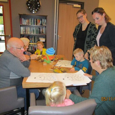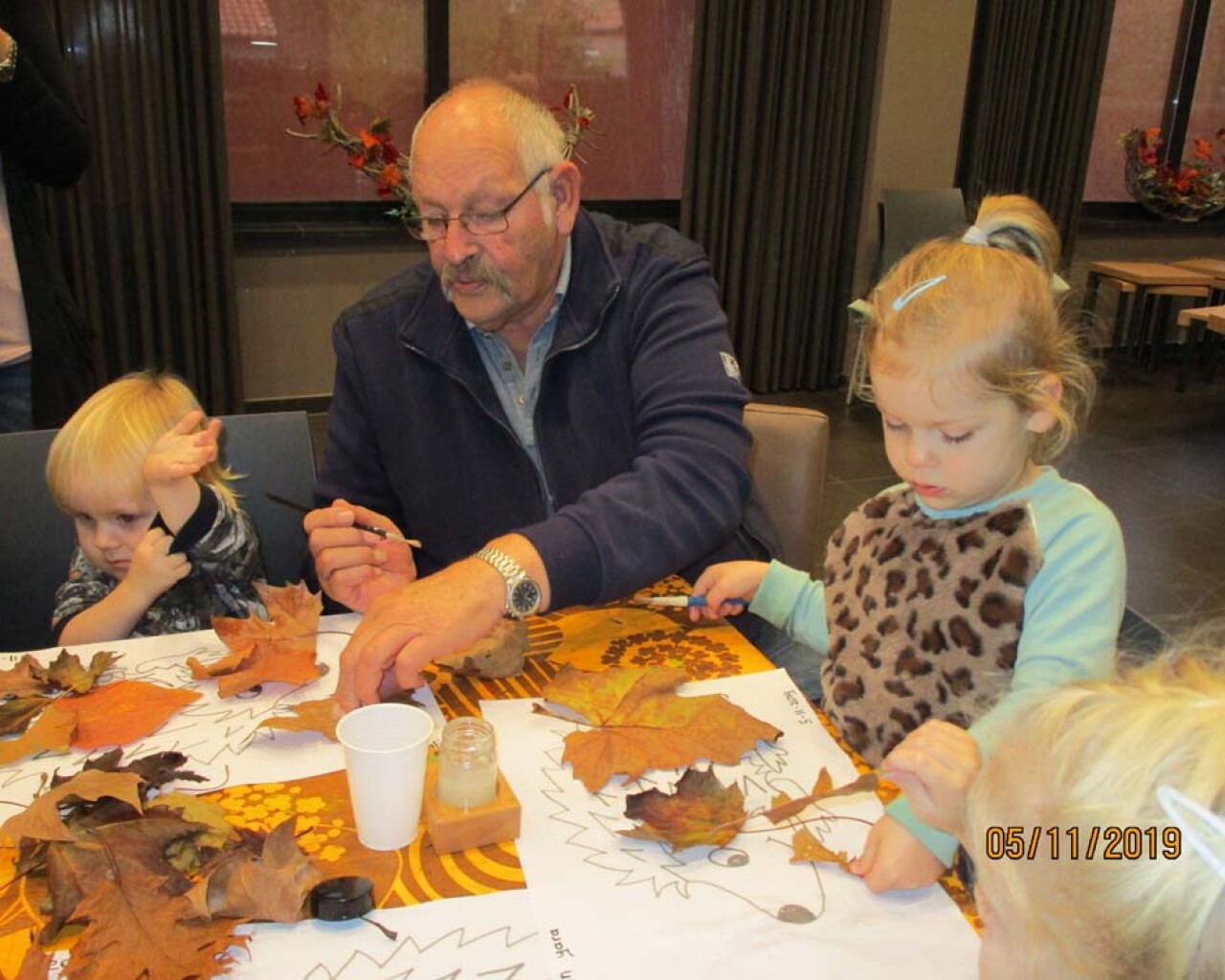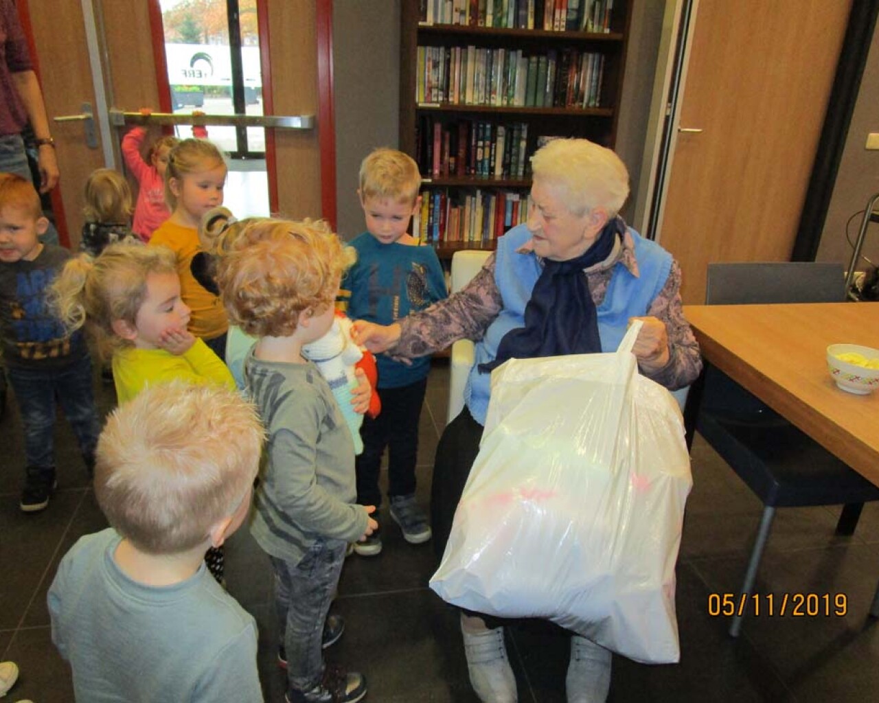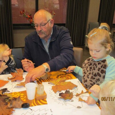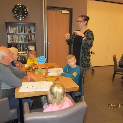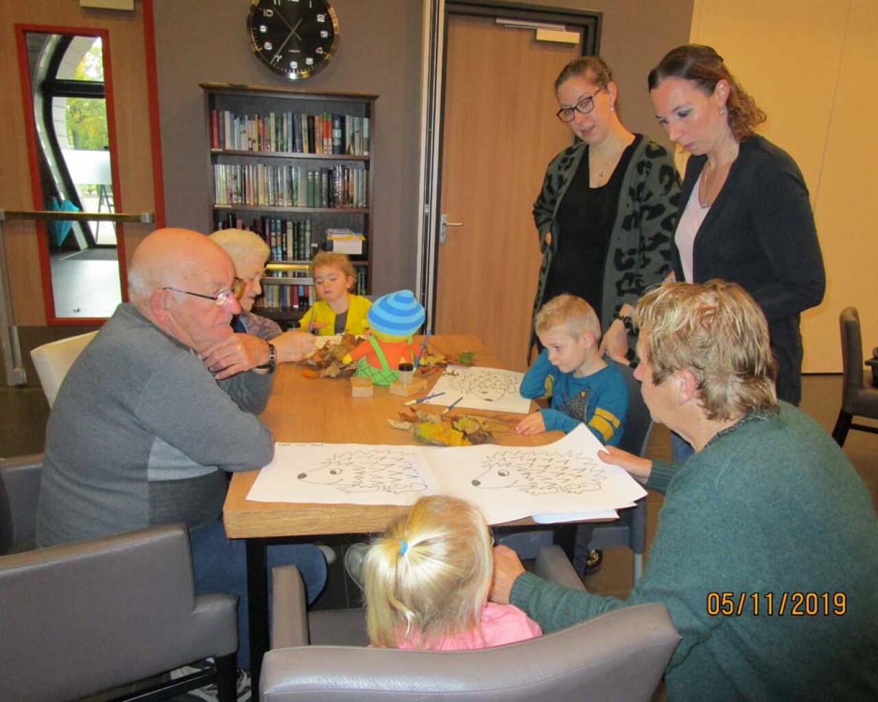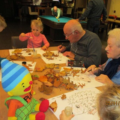 De peuters hebben samen met de gasten een egel beplakt met herfstbladeren. Na afloop kreeg iedereen een gebreide knuffel mee naar huis gemaakt door onze gast Wies Winkelmolen. Allemaal blije gezichten!
