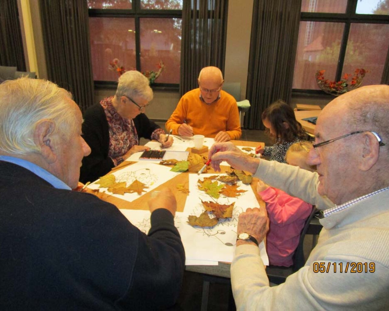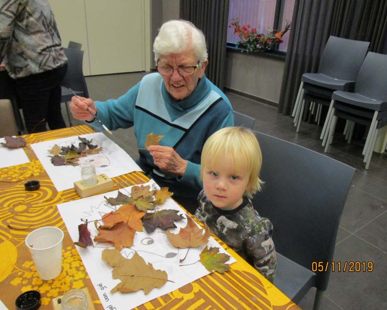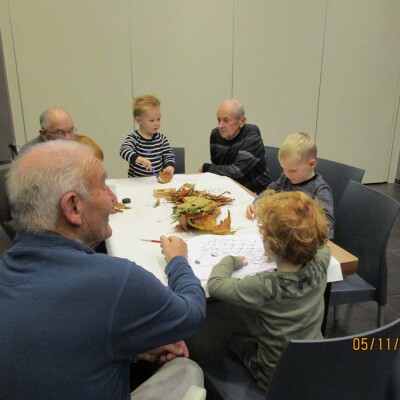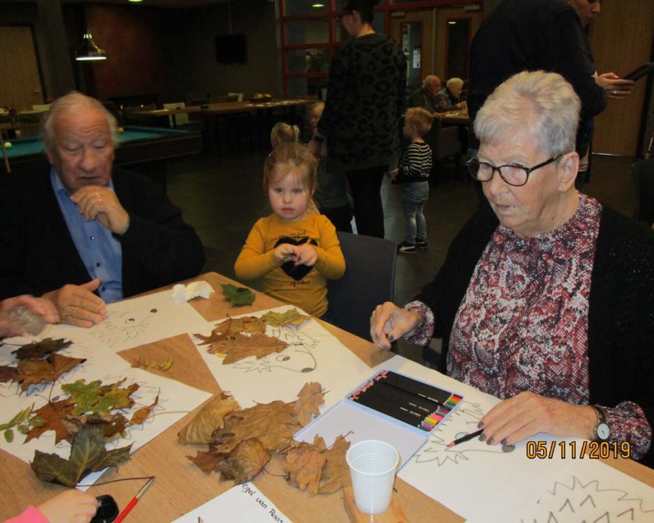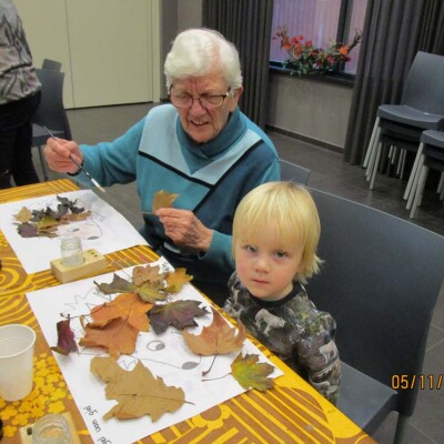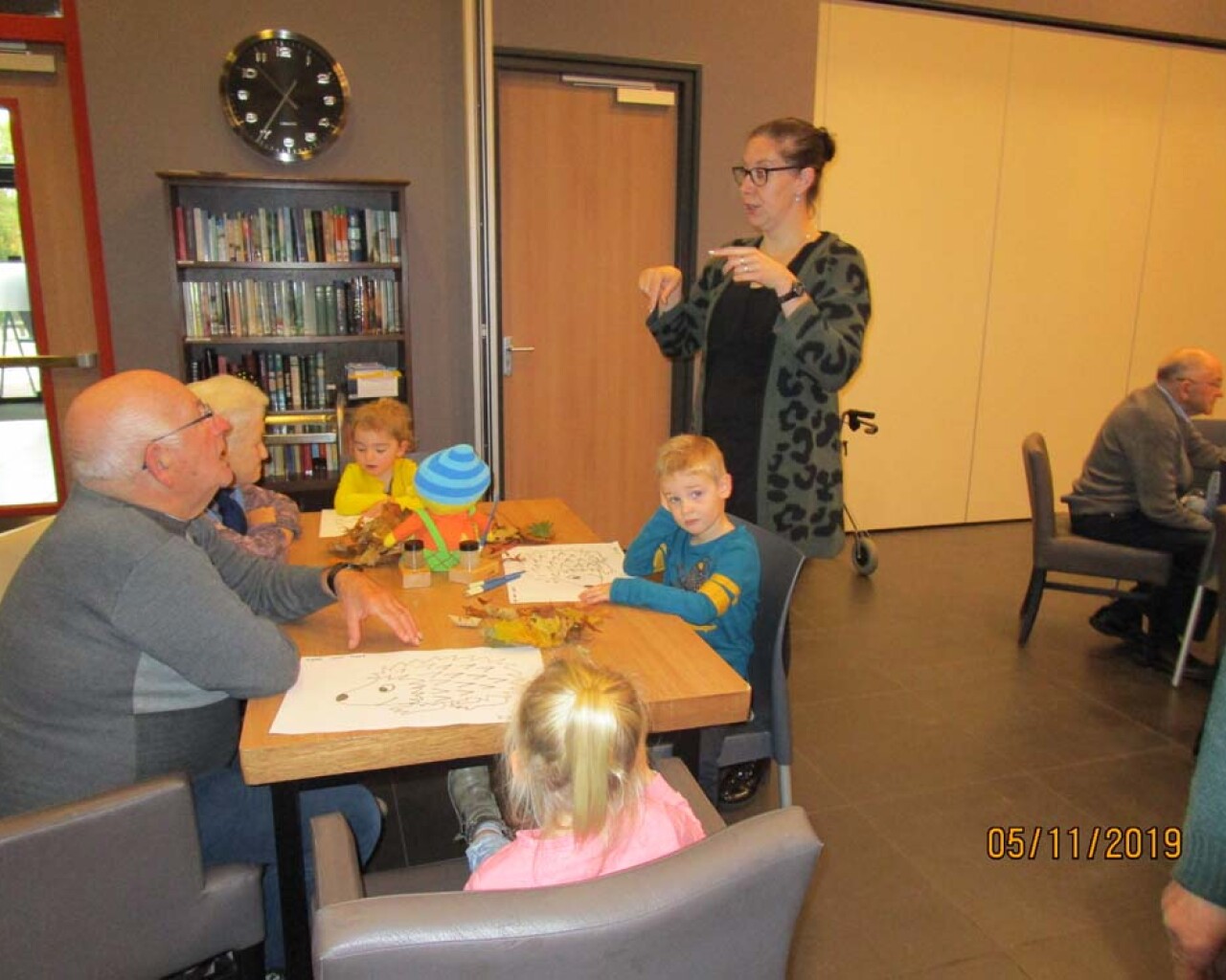 De peuters hebben samen met de gasten een egel beplakt met herfstbladeren. Na afloop kreeg iedereen een gebreide knuffel mee naar huis gemaakt door onze gast Wies Winkelmolen. Allemaal blije gezichten!