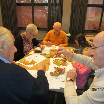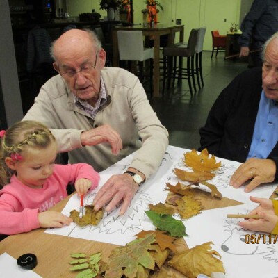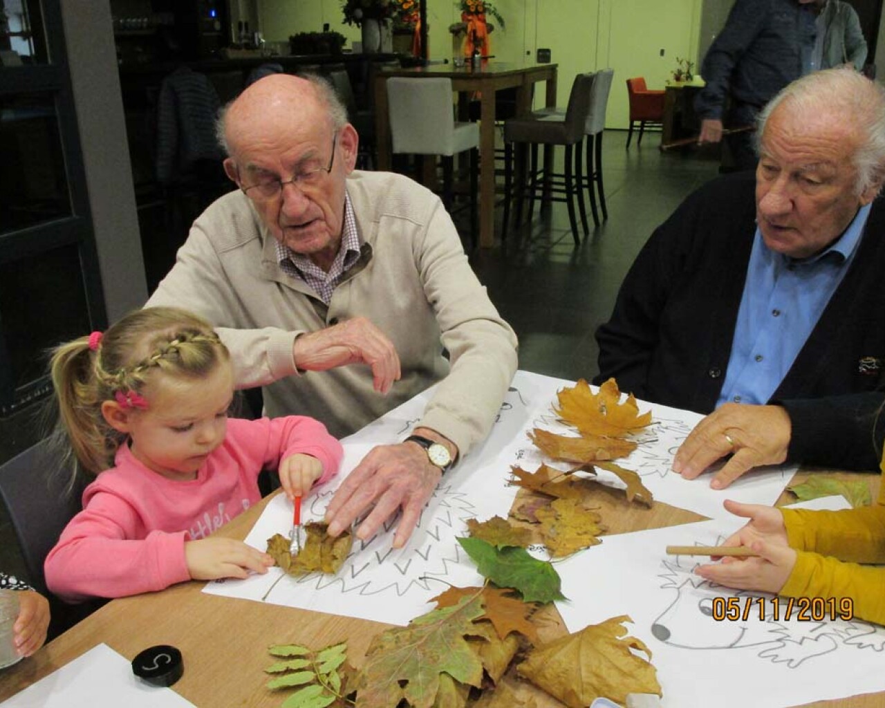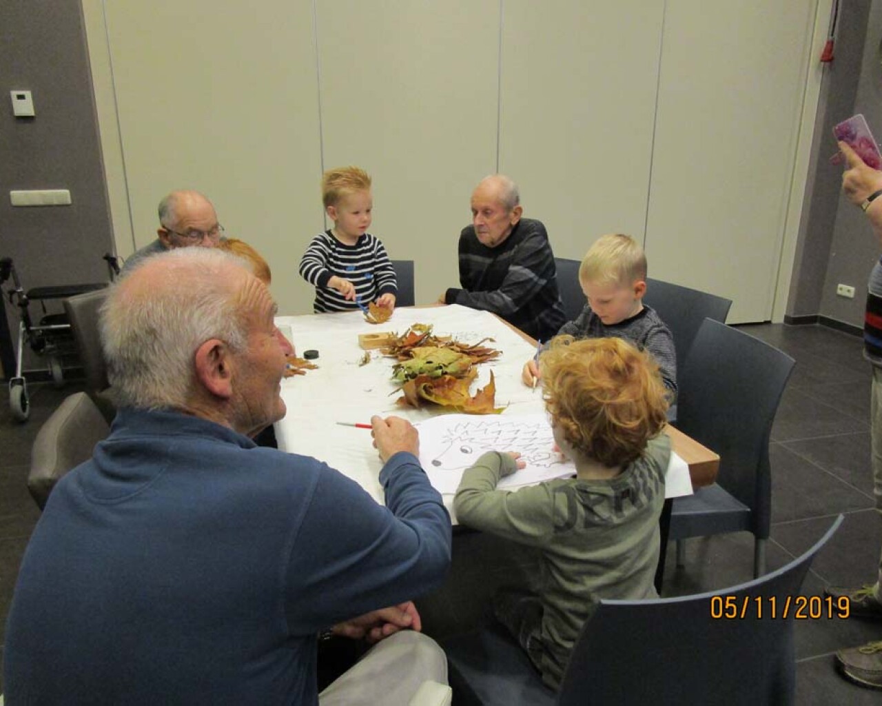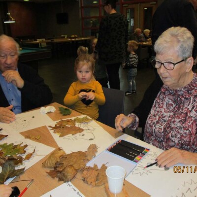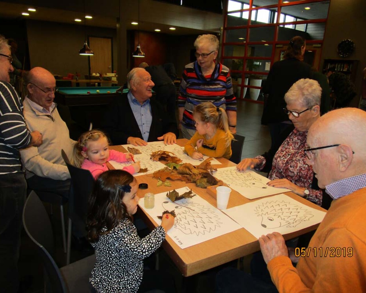 De peuters hebben samen met de gasten een egel beplakt met herfstbladeren. Na afloop kreeg iedereen een gebreide knuffel mee naar huis gemaakt door onze gast Wies Winkelmolen. Allemaal blije gezichten!