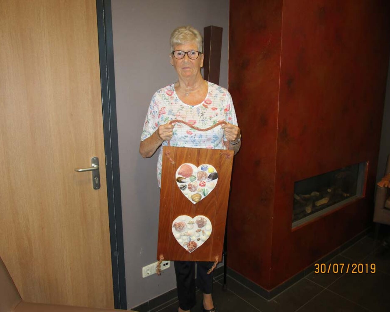 een mooi schilderij gemaakt van schelpen.