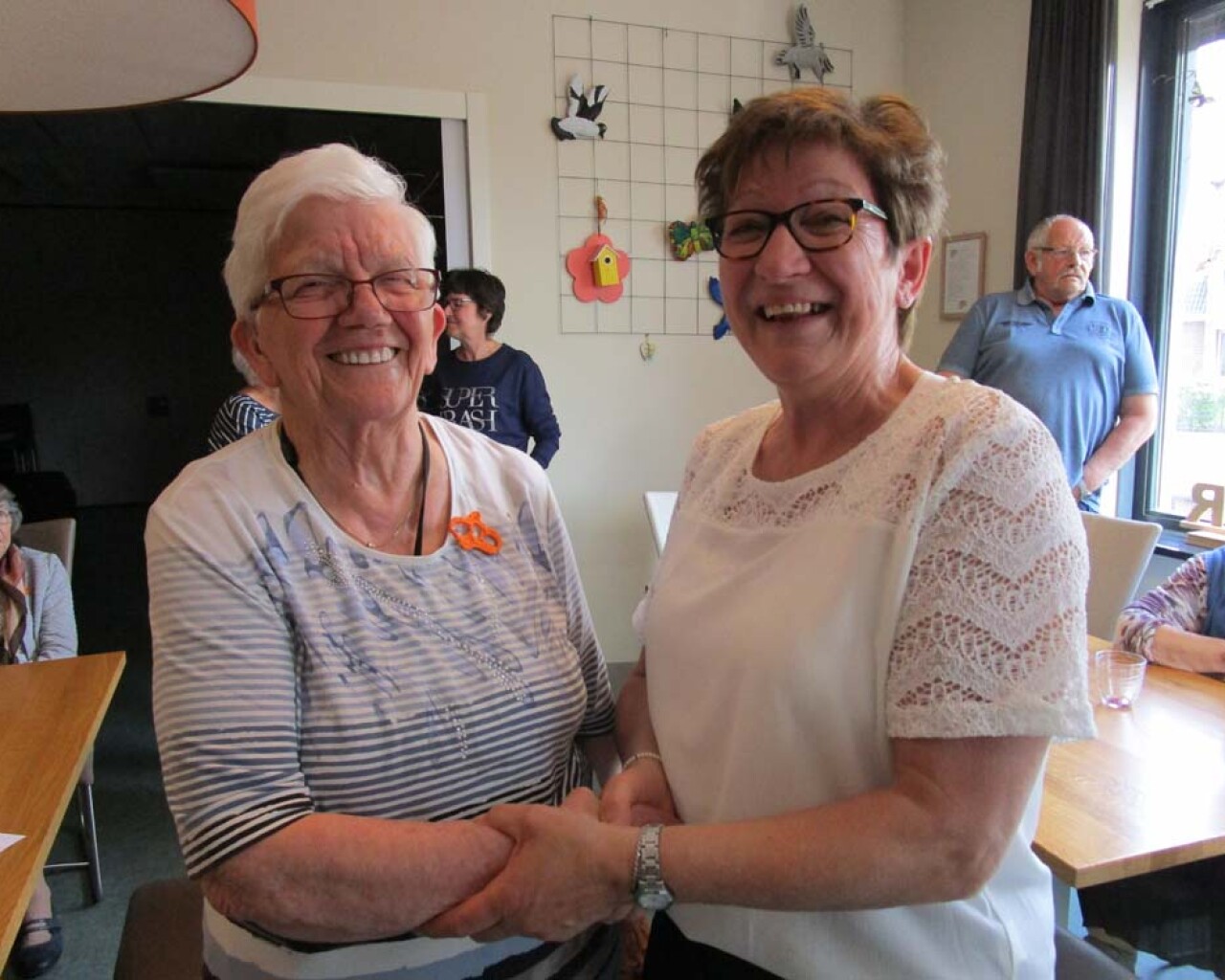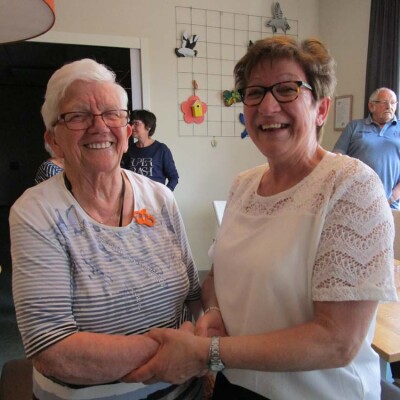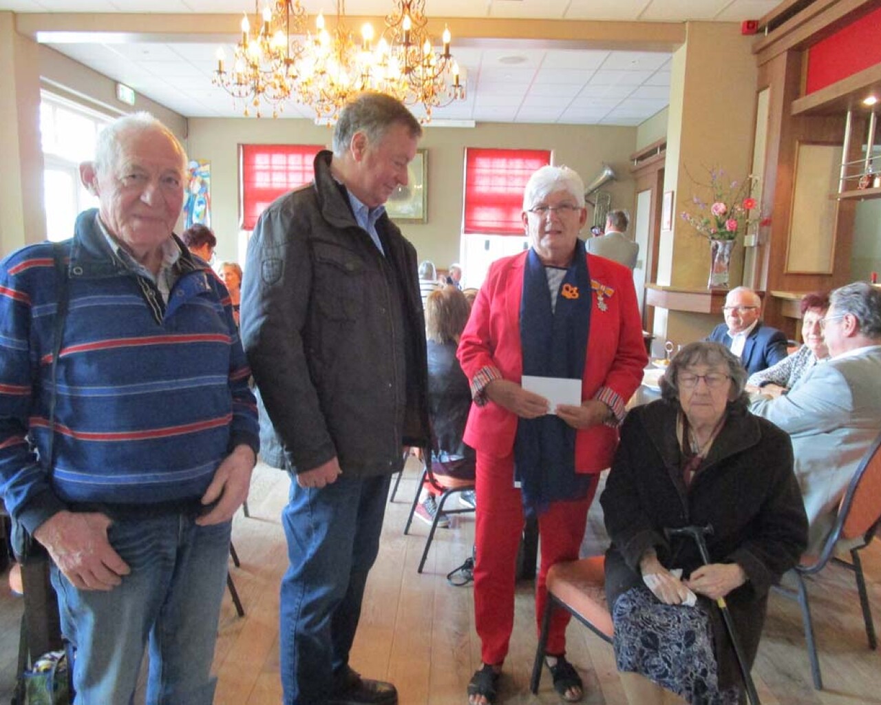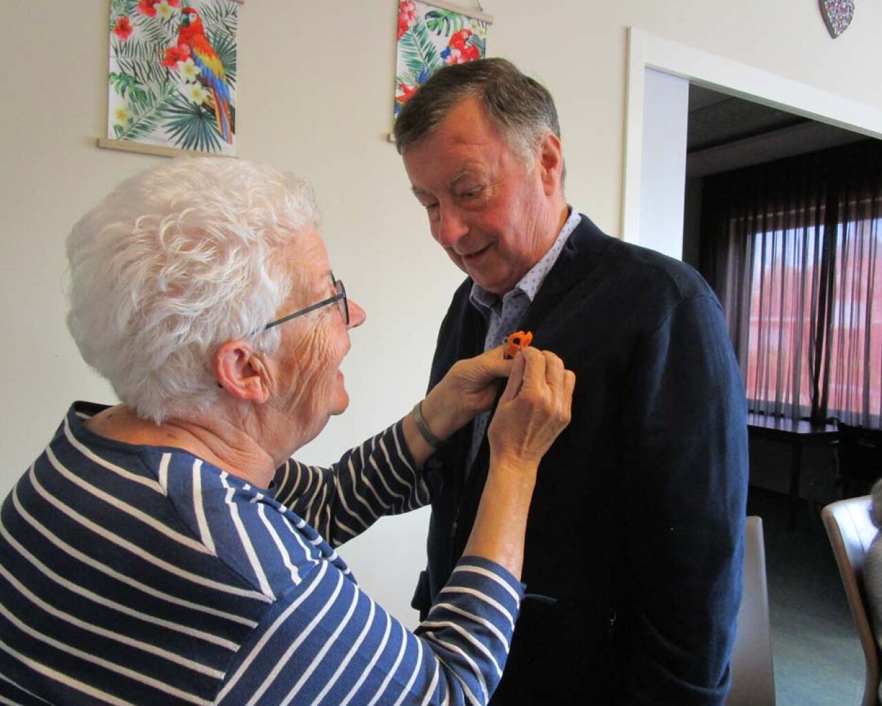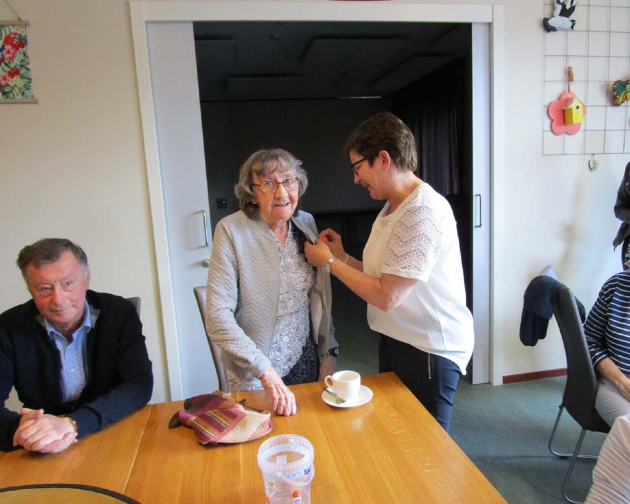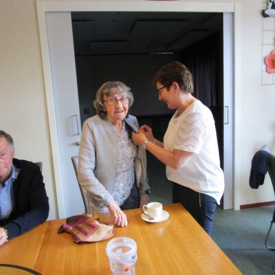 Onze vrijwilligster Ans Nelissen van de Hoeskamer heeft een welverdiende onderscheiding ontvangen, lid in de Orde van Oranje Nassau. Ook van de Hoeskamer kreeg Ans een mooi oranje gehaakt kroontje als onderscheiding voor al haar goede zorgen. Tevens kregen de gasten van Egchel ook een kroontje gemaakt door een inwoonster van Egchel. Bedankt hiervoor!