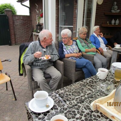 We kregen een uitnodiging om een kop koffie te komen drinken bij Ton en Marlies