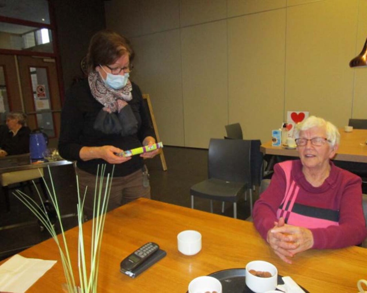 De Hoeskamer vierde Sinterklaasfeest. Helaas was onze Sint door omstandigheden verhinderd. Wel had hij mooie cadeaus bezorgd met voor ieder een passend gedicht. Na een spannend dobbelspel en veel lekkers was het een geslaagde middag.