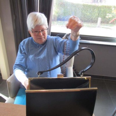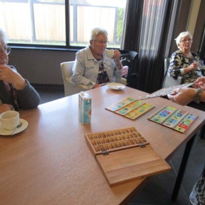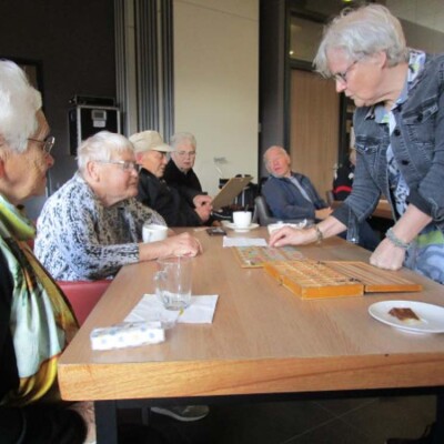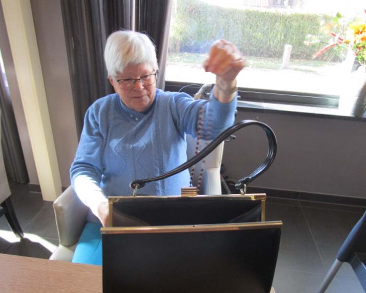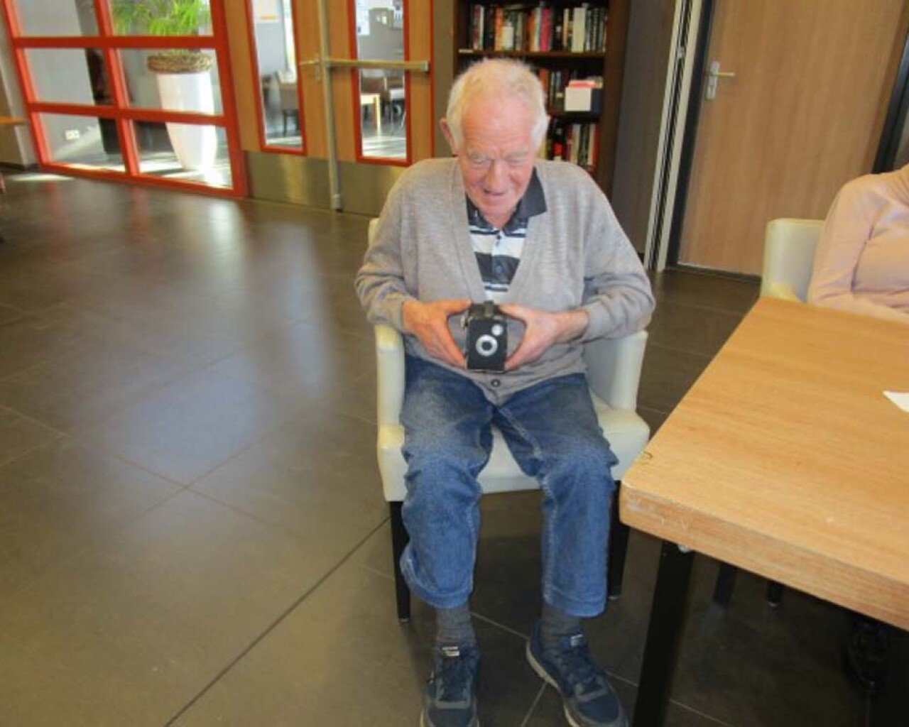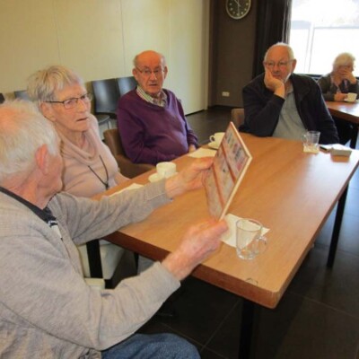 Terug in de tijd! Coby Houben kwam met materialen en verhalen over hoe het er vroeger aan toe ging op school. Heel herkenbaar voor iedereen met de leesplankjes, kroontjespen, letterdoos, poëziealbum, enz.