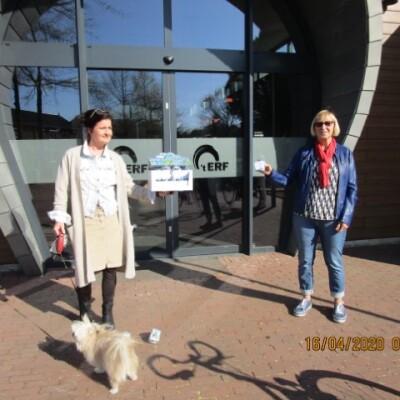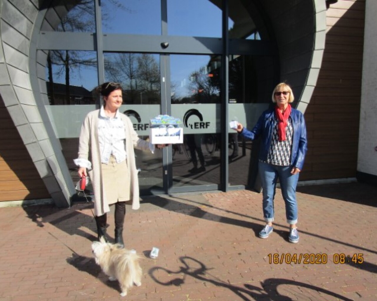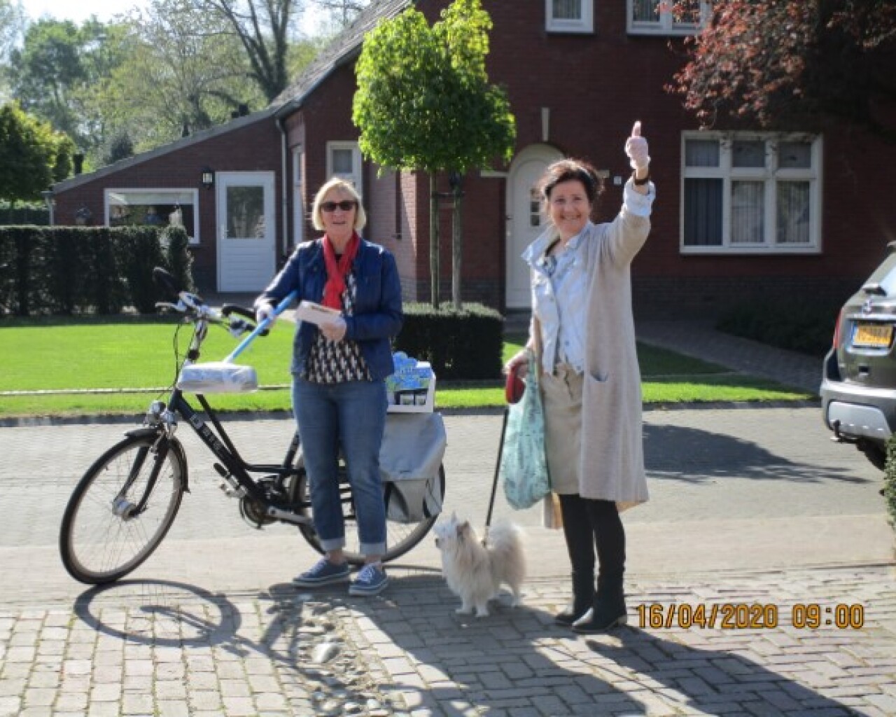 De gasten en vrijwilligers werden getrakteerd op een doosje vergeet me nietjes. Op een zonnige dag werden deze aangeboden op een gepaste afstand. Het was weer fijn om elkaar te ontmoeten.