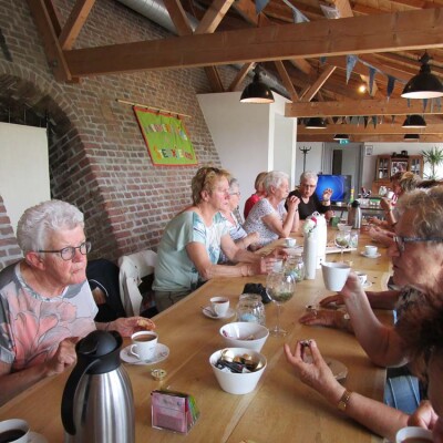 Vrijwilligersuitstapje. Er werd gestart met een fietstocht, waarna we in de Ringoven koffie en wat lekkers kregen. Daarna via toffedag.nl een spannend spel gespeeld, minute to win it. De adrenaline steeg behoorlijk, maar uiteindelijk kwam er toch een winnaar tevoorschijn. Het was een TOFFE, leuke middag!