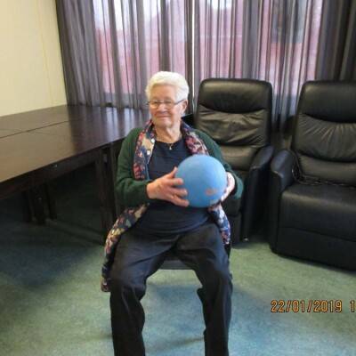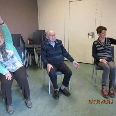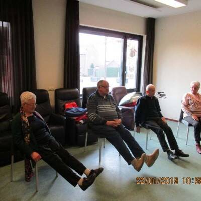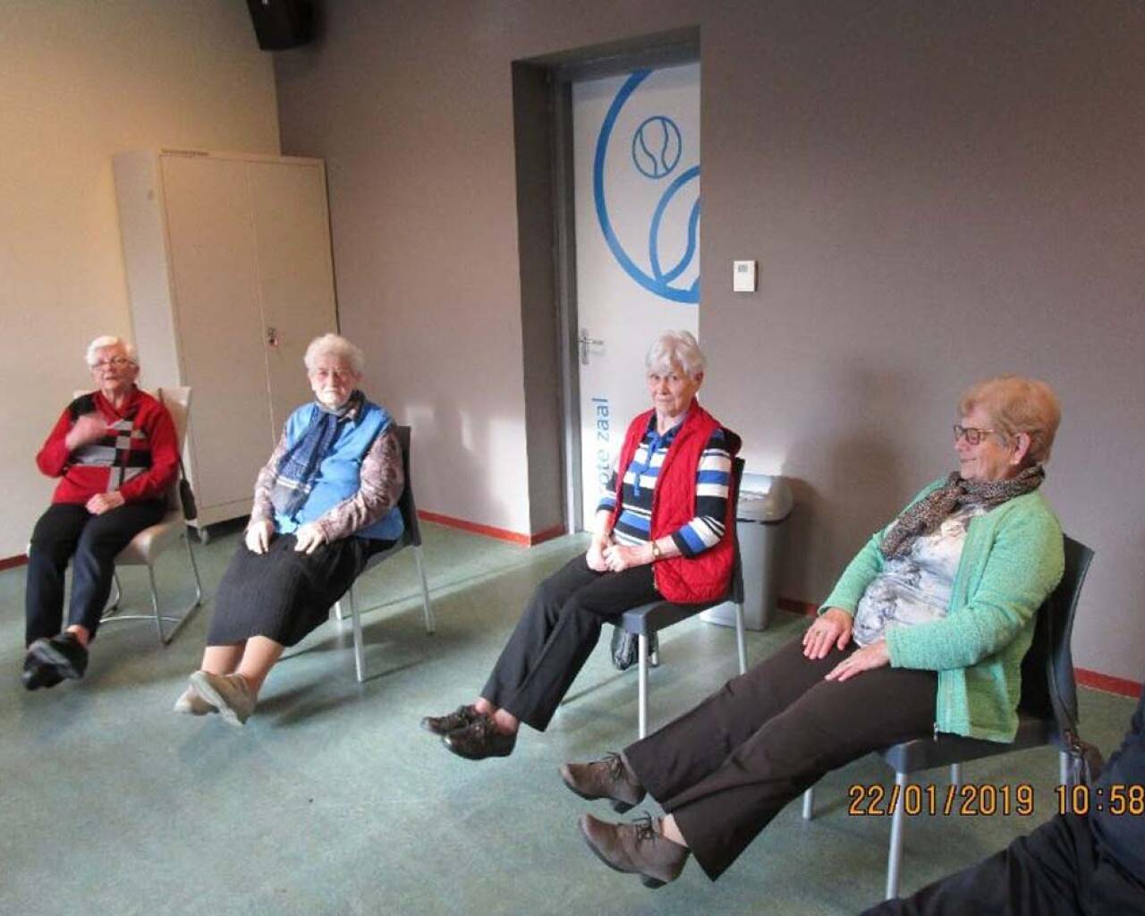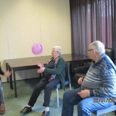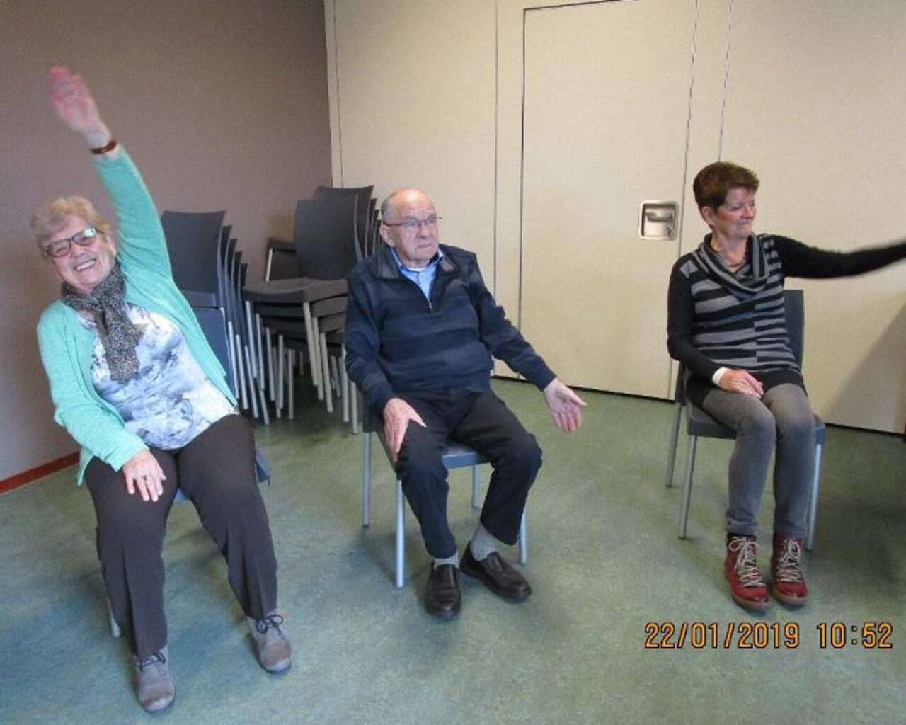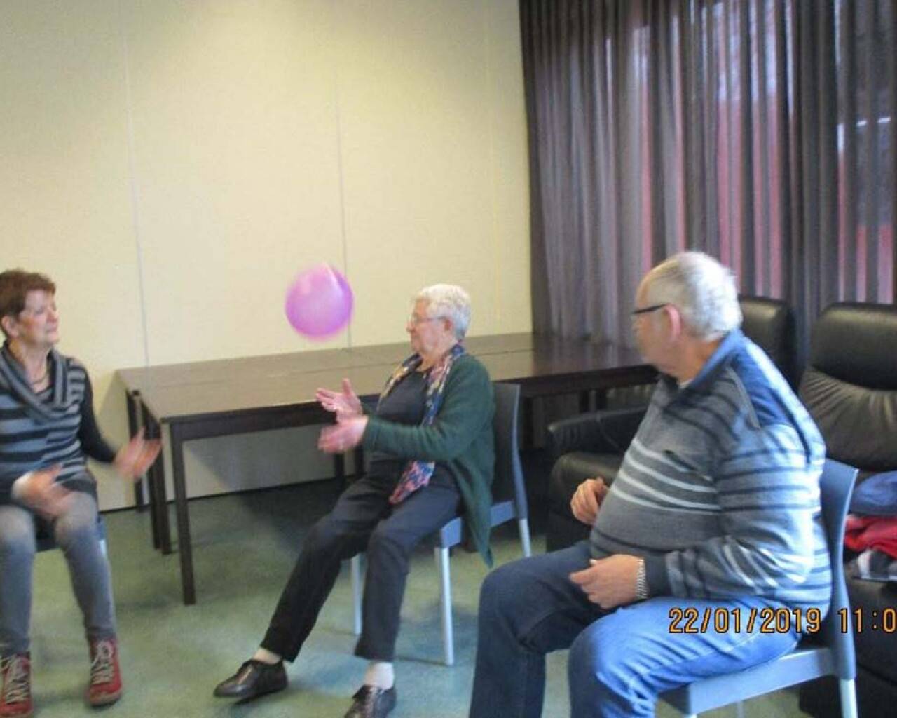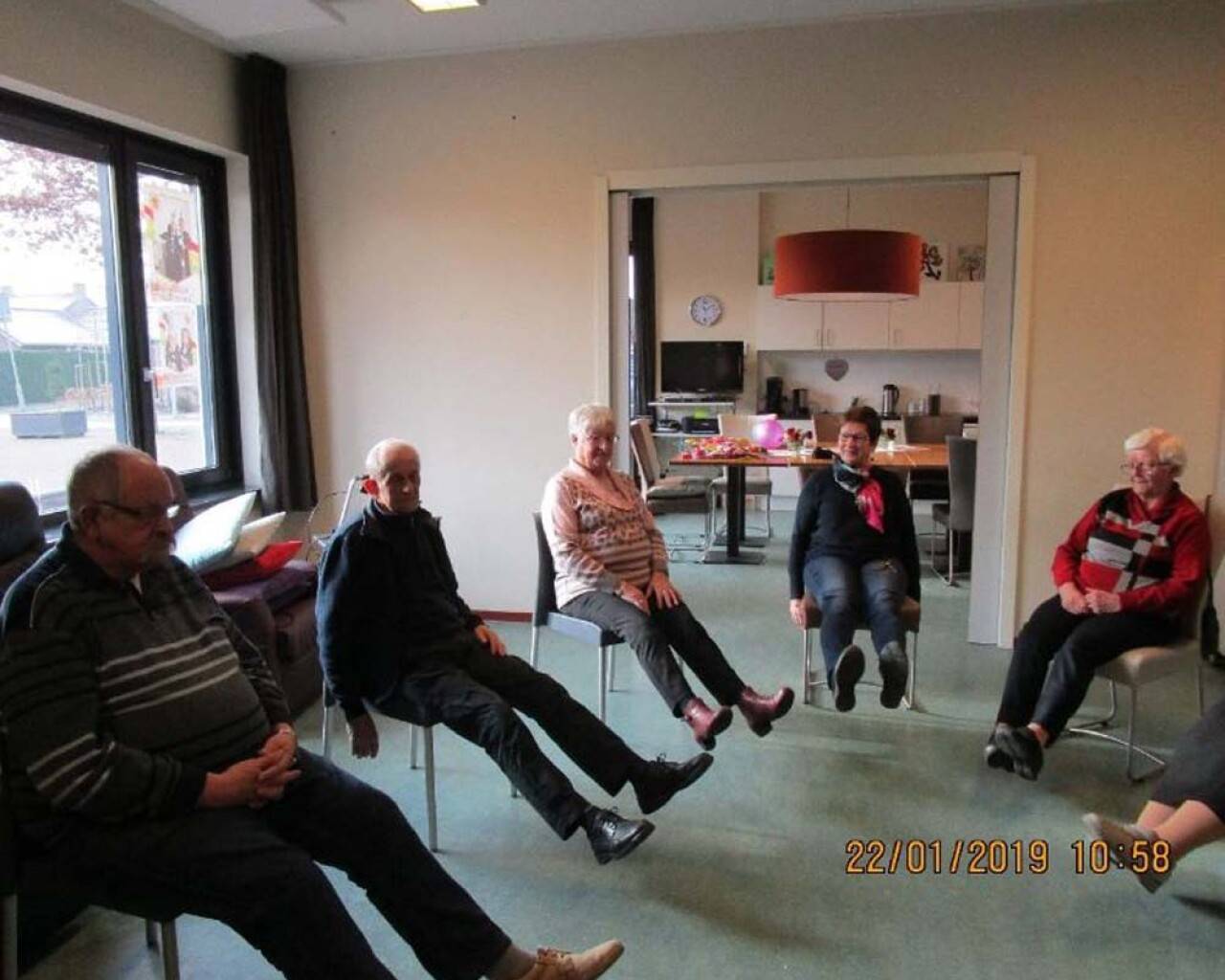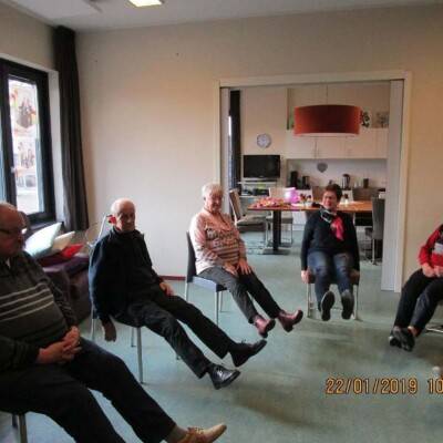 Vandaag hebben we samen als bewegingsactiviteit d zit gymnastiek beoefend met daarna een gezellig balspel.
