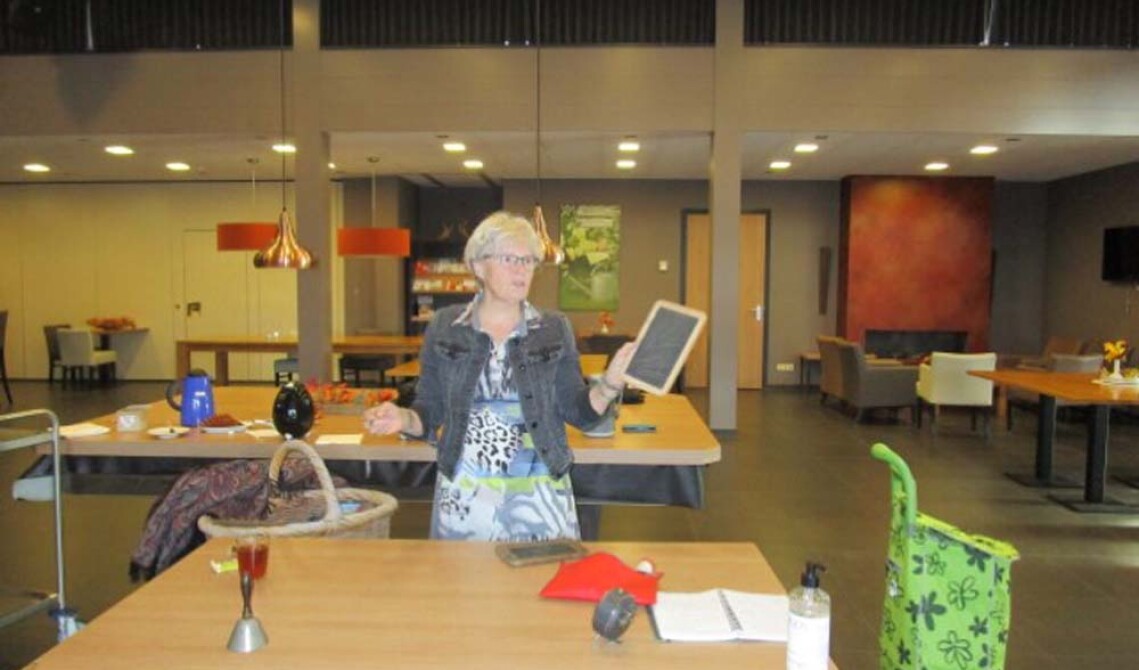 Coby Houben kwam met materialen en verhalen over hoe het er vroeger aan toe ging op school. Heel herkenbaar voor iedereen met de leesplankjes, kroontjespen, letterdoos, poëziealbum, enz.