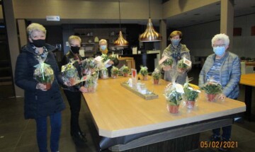 Om de gasten van "de Hoeskamer" wat op te fleuren kregen ze een bloemengroet bezorgd door enkele vrijwilligers.