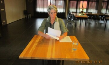 Marjo Verberne kwam in "de Hoeskamer" voorlezen.Een mooi verhaal van Kees van Kooten over een rooie brandweerauto. Dat verhaal is geschreven in opdracht van de leescoalitie in het kader van de Nationale voorlees "lunch" 2020