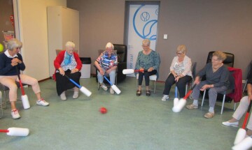 't Erf heeft nieuw materiaal gekocht voor de gymnastieklessen. De Hoeskamer mag hier ook gebruik van maken. Daarom kregen we les van gymdocente Margriet Peters-Brugmans. Zij gaf ons hele goede uitleg over de materialen. Het was een speelse morgen.