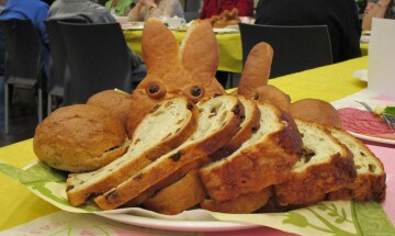 Gezellige Paasbrunch met gasten en vrijwilligers. We hadden ook een muzikant en iemand die een Paasgedicht voorlas. De brunch was met alles voorzien, kluntjeswek en rozienenbroëd en werm vleis. Auch nog een heerlijk toetje. Fantastisch verzorgd!
